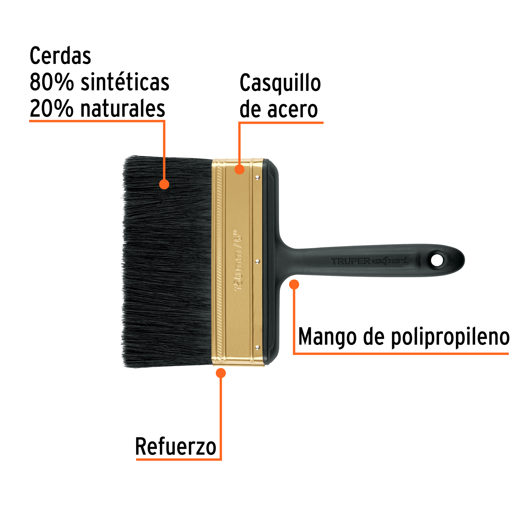*-Cerdas finas 80% sintéticas y 20% naturales para mayor retención de pintura y acabado uniforme