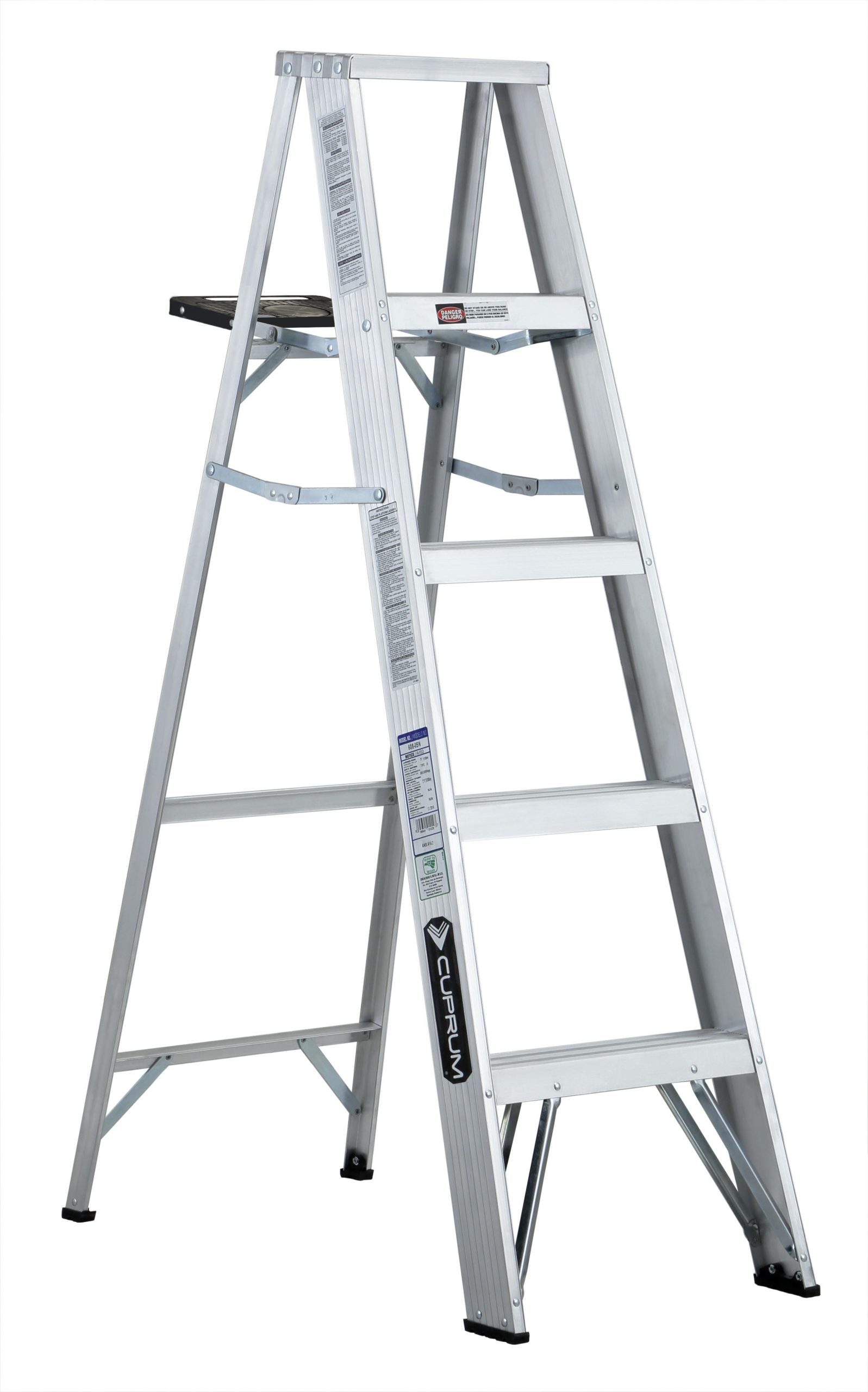 *-Escalera de tijera de aluminio con tapa ProTop® y charola, de 5 pies de altura y capacidad de carga de 150 Kg. Tipo III