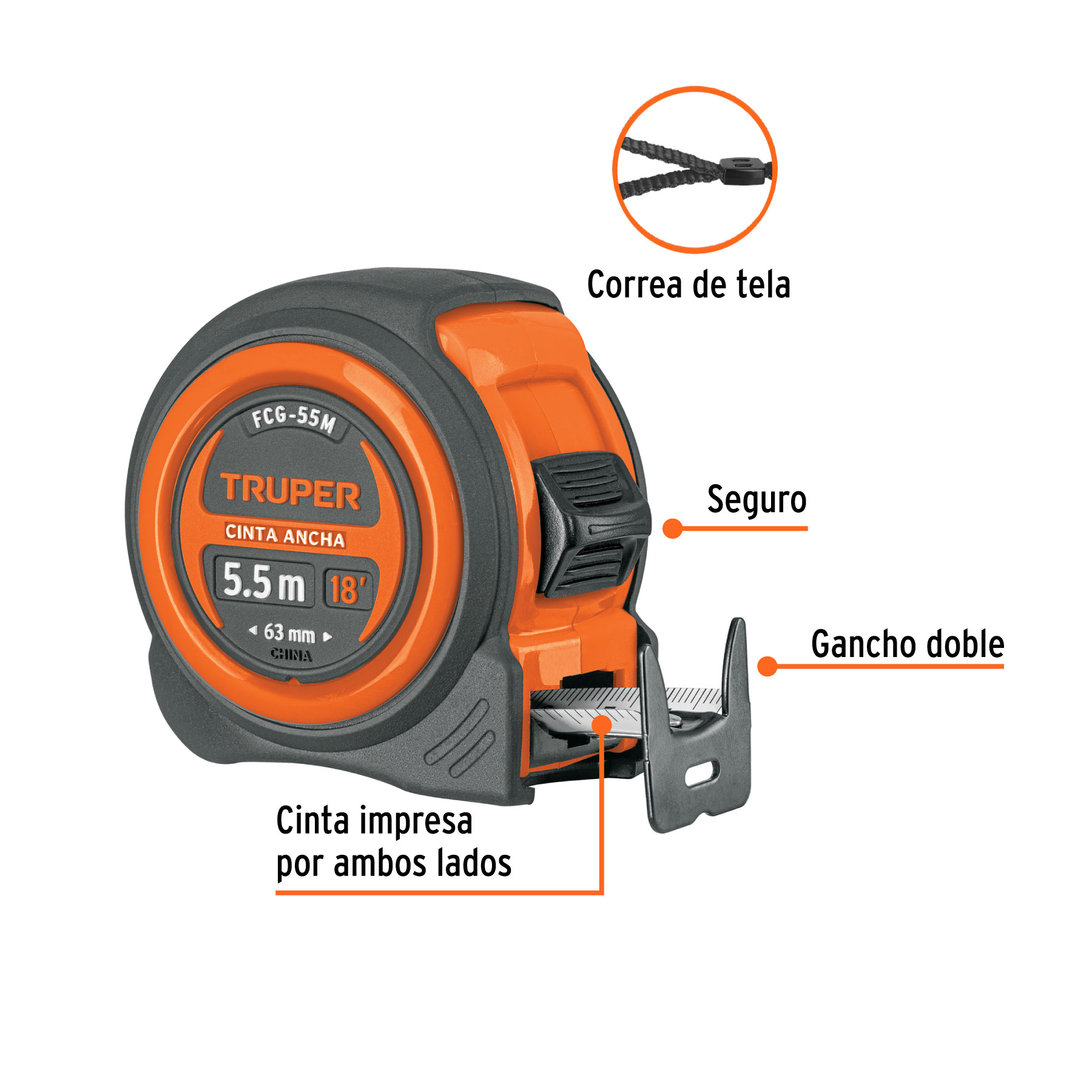 *-Cinta ancha que permite mayor extensión, impresa por ambos lados, recubierta de laca para máxima duración de la graduación
