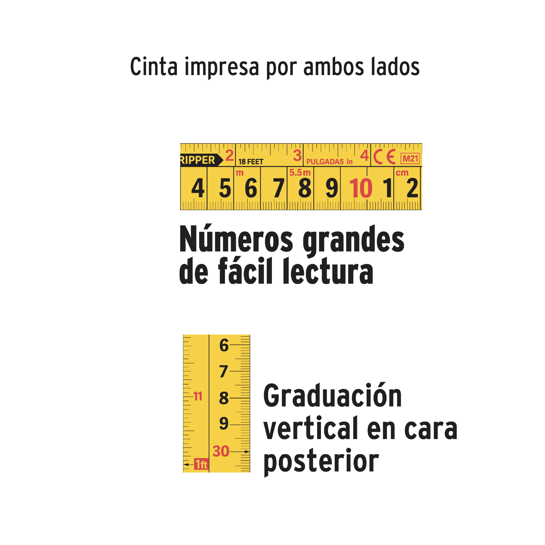 *-Cinta ancha que permite mayor extensión, impresa por ambos lados con doble capa de nylon para máxima duración de la graduación