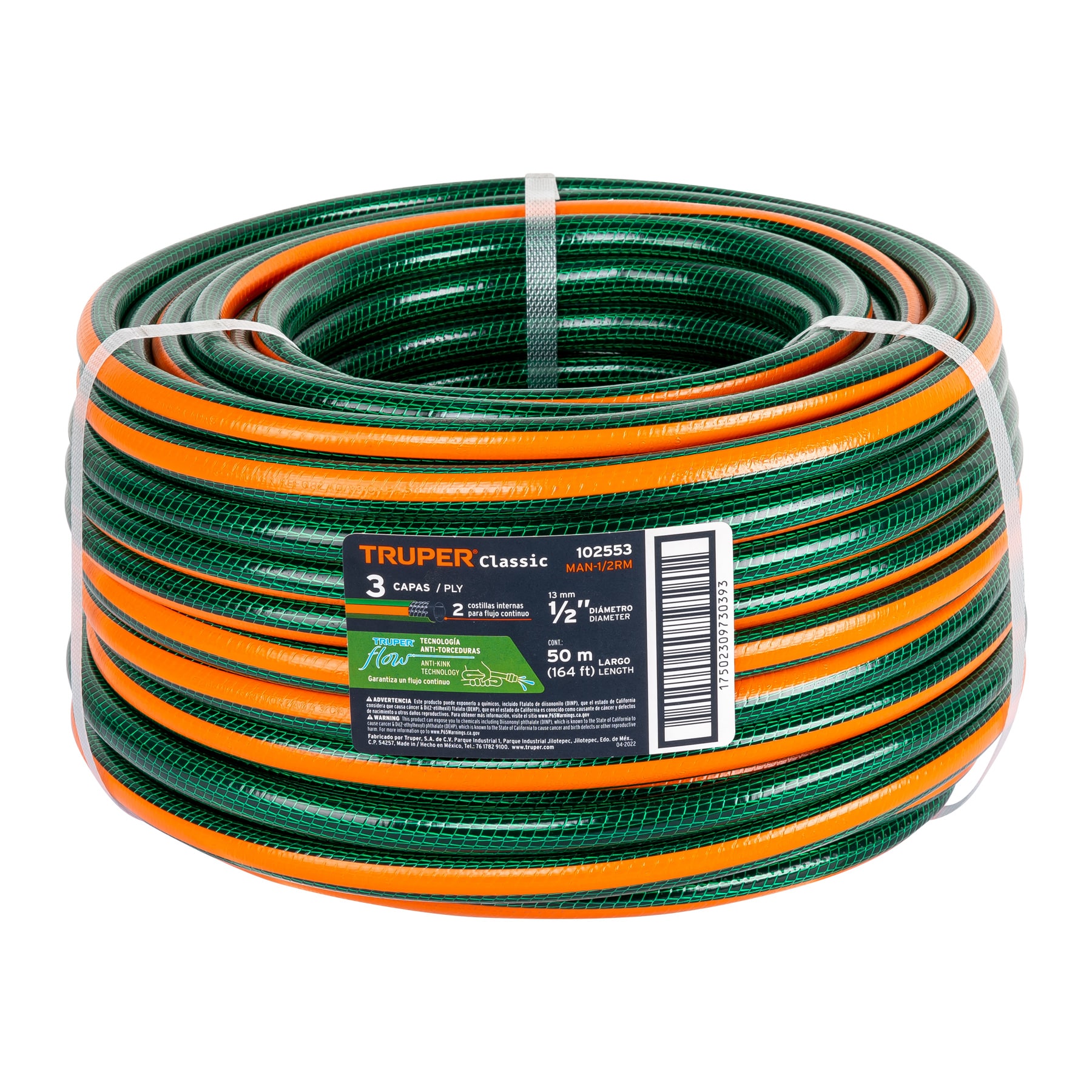 2 costillas internas que permiten el flujo de agua aún con la manguera doblada