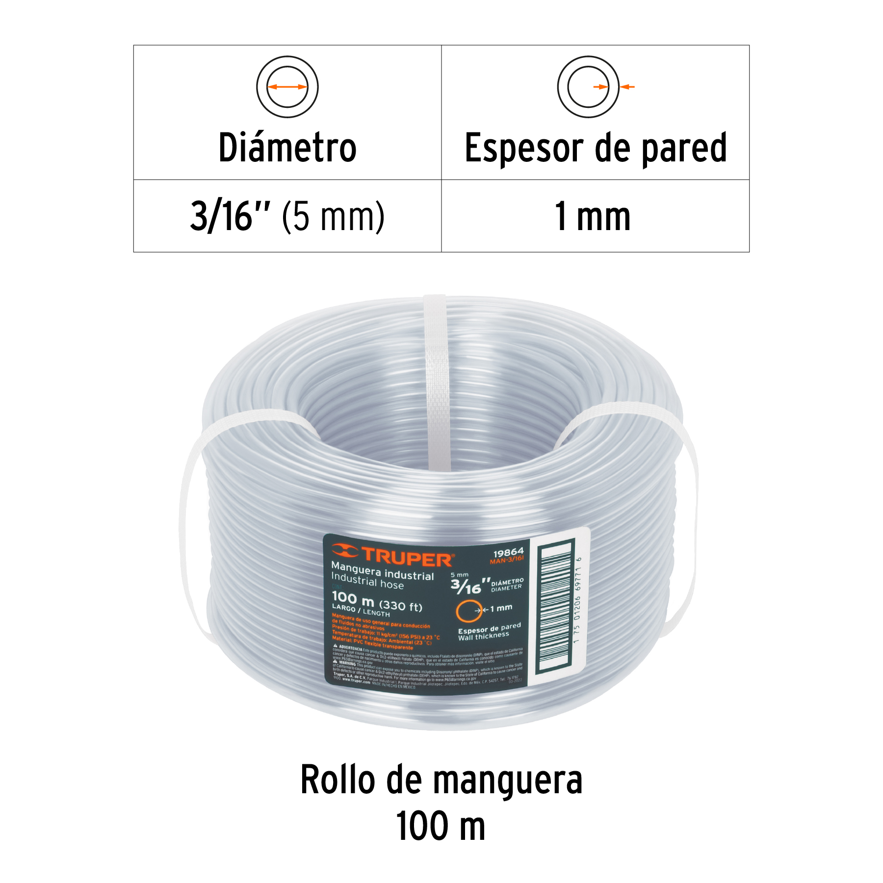 Metro de manguera 3/16″ industrial en rollo de 100 m, Truper