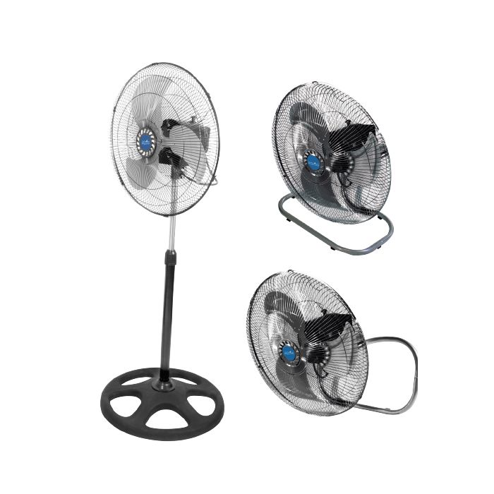 *-Tres posiciones de uso: pedestal, piso y pared *-Ligero y fácil de manejar *-3 velocidades *-Aspas metálicas *-Cuenta con sistema de oscilación *-Voltaje:120 V~ *-Frecuencia: 60 Hz *-Potencia: 80 W *-RPM:1400